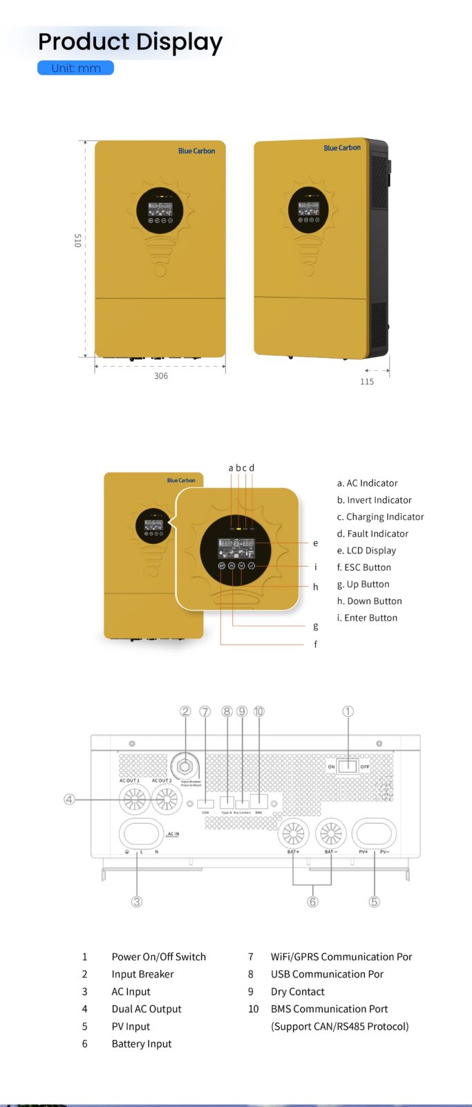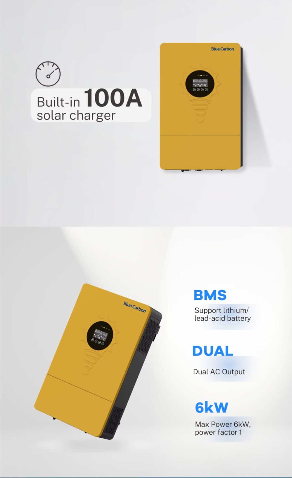 INVERSOR HIBRIDO OFF GRID BLUE CARBON 48v 6KW